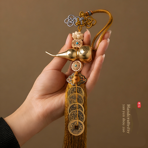 Chinese Taoist gourd pendant jewelry brass peach wood Chinese Taoist jewelry, feng shui jewelry